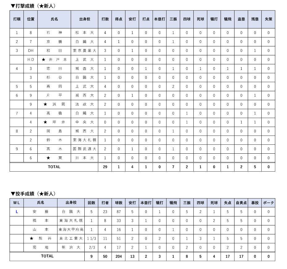 | 城西大学 | 1 | 0 | 0 | 0 | 4 | 2 | 3 | 3 | 4 | 17 | |||