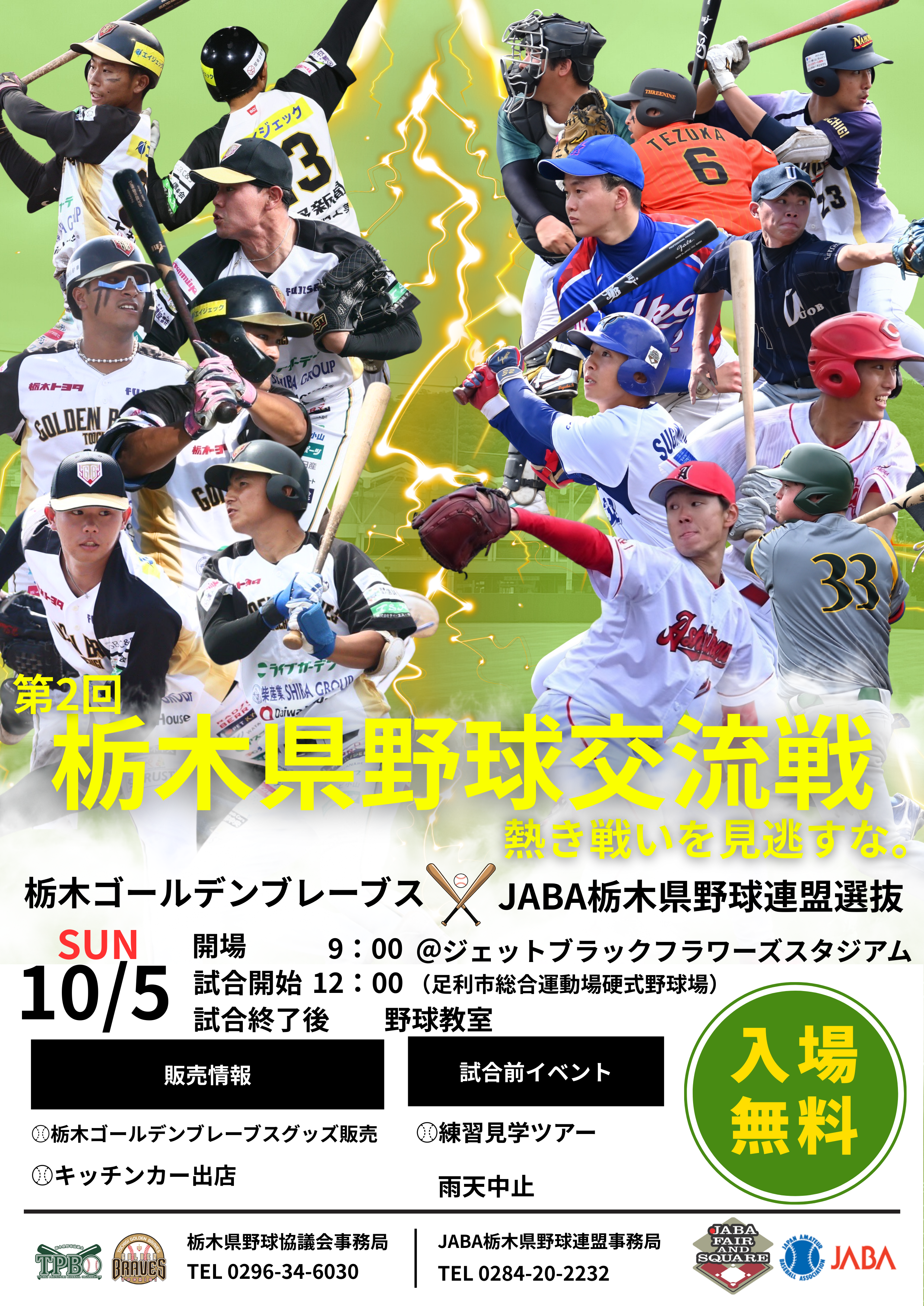 対 戦:栃木ゴールデンブレーブスvsJABA栃木県野球連盟選抜